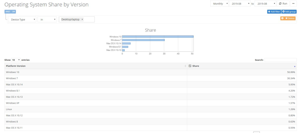 Ifølge Net Applications har Windows 10 nu en markedsandel på 50,99 procent fulgt af det aldrende Windows 7, der med en fortsat markedandel på 30,34 procent må siges at være særdeles levedygtigt.