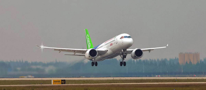 Flyet kaldes C919 og er et tomotorers såkaldt narrow-body passagerfly, som udførte sin jomfruflyvning i 2017 efter flere forsinkelser og ni års udviklingsarbejde.