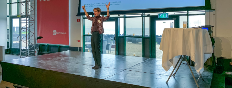 Jeanne W. Ross, direktør og principal research scientist for MIT Sloan School of Management Center for Information Systems Research, under sin keynote på Devoteam-konferencen Den Digitale Virksomhed i København. Foto: Christoffer Lund-Hansen.