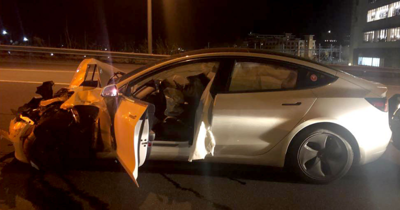 Af uvisse årsager registrerede Teslaens avancerede systemer ikke de holdende biler og stødte ind i dem begge - først patruljevognen og så den strandede bil. Heldigvis kom ingen til skade.
