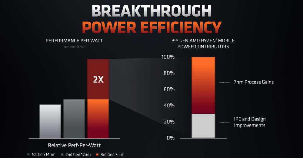 Her vil topmodellen Ryzen 7 4800H kunne udlede op 54 watt, hvilket gør, at den otte-kernede processor kan opretholde frekvenser på mellem 2,9 og 4,2 GHz. Ved almindeligt brug vil strømforbruget dog ligge mellem 35 eller 45 watt alt efter model.