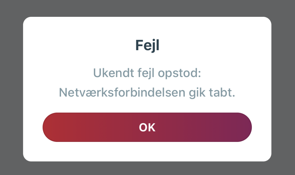 "Ukendt fejl opstod: Netværksforbindelsen gik tabt." Mens selskabet på sin driftsside oplyser: