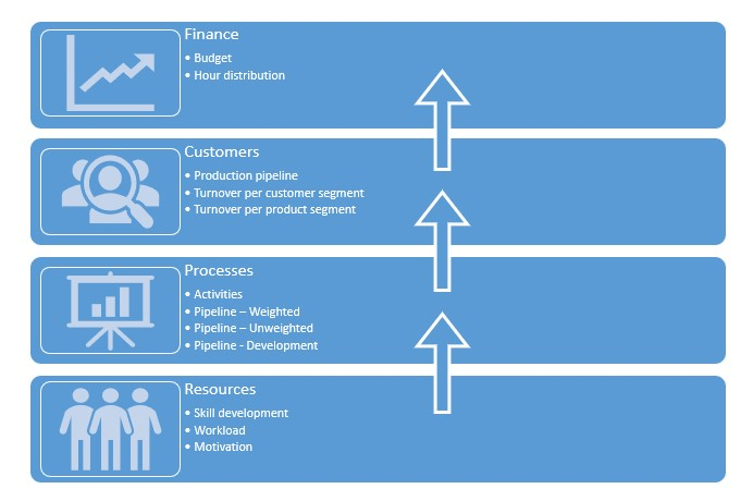 I vores måde at arbejde med KPI'er på hos Orbit har vi lånt en hel del fra Balanced Scorecard, som er et strategisk framework, hvor man forsøger at skabe balance i det, som man måler på.