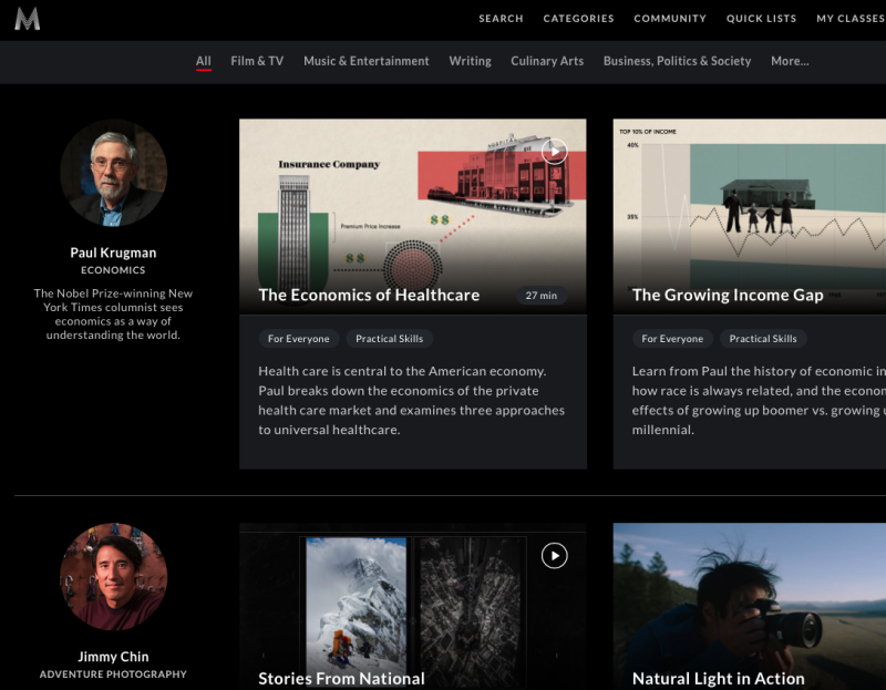 I den mere kostbare ende af uddannelsesskalaen findes Masterclass, der gør brug af verdenskendte eksperter indenfor deres felt.