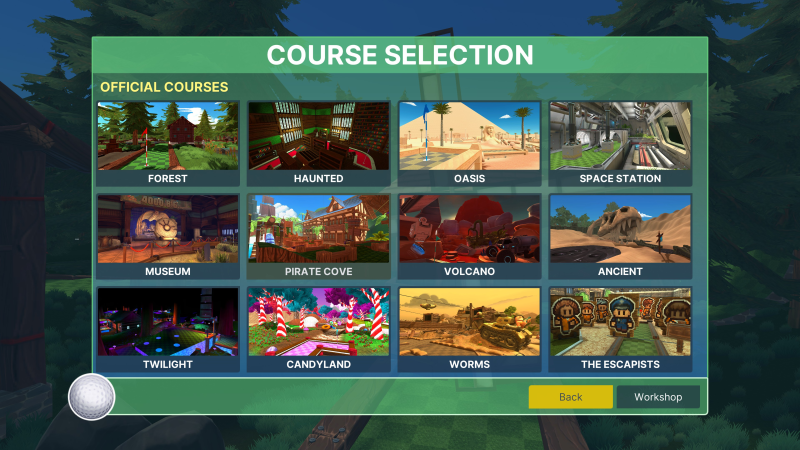 Før man sætter det hele i gang, bedes man beslutte sig hvor og hvordan det hele skal foregå. Banerne er delt op i 12 tematiserede verdner der spænder sig over alt fra futuristiske laboratorier til pirat-verdner. Andre har lånt inspiration fra nogle af udgiverens (Team 17) mest populære spilserier, og derfor kan man altså også her spille minigolf med Worms eller The Escapists som baggrund.