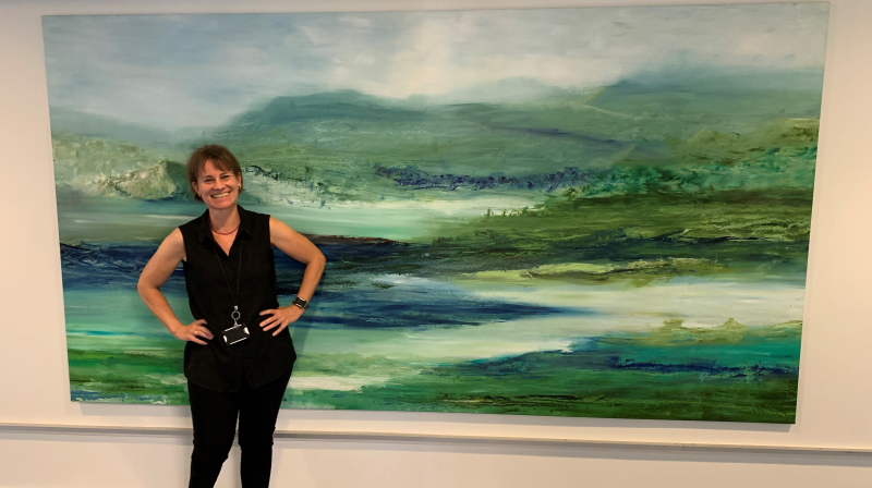 Jeg har udsmykket gangene på CBS med mine malerier, og mit største maleri hænger her hos Danmarks Statistik i dag.