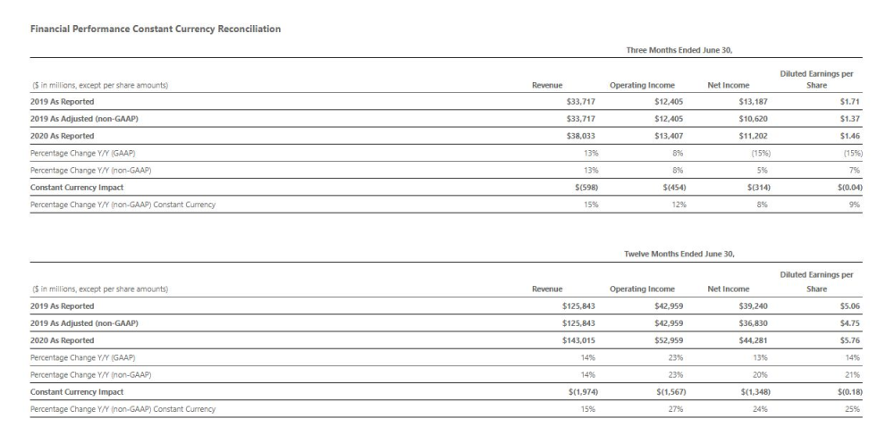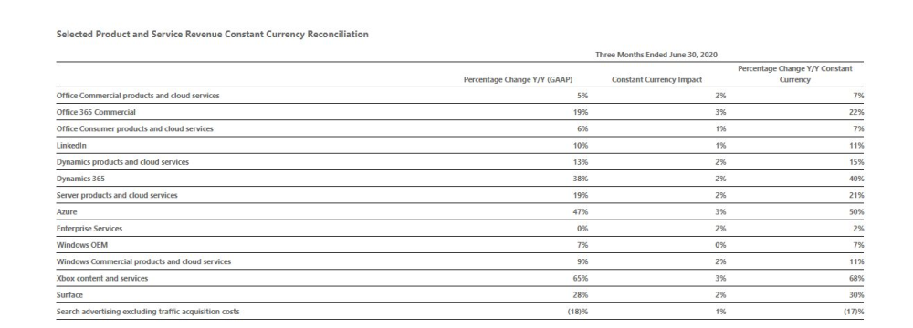 I hele 2019 landede Microsoft en omsætning på 143 milliarder dollar (vækst på 14 procent i forhold til 2018) og et overskud på 44,3 milliarder dollar (vækst på 13 procent i forhold til 2018).