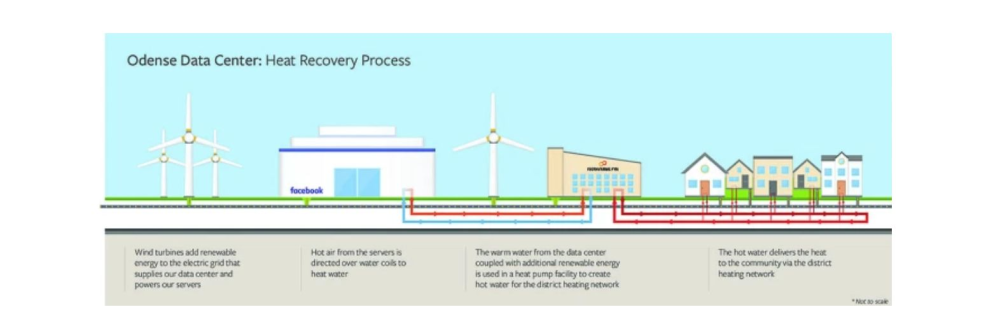 Hun beskriver i et opslag hos Facebook, hvordan et team af ingeniører, arkitekter, designere, driftsfolk og andre fra Facebook sammen med folk fra Fjernvarme Fyn satte sig for at opsamle og genanvende overskudsvarmen fra datacenterets to store server-haller.