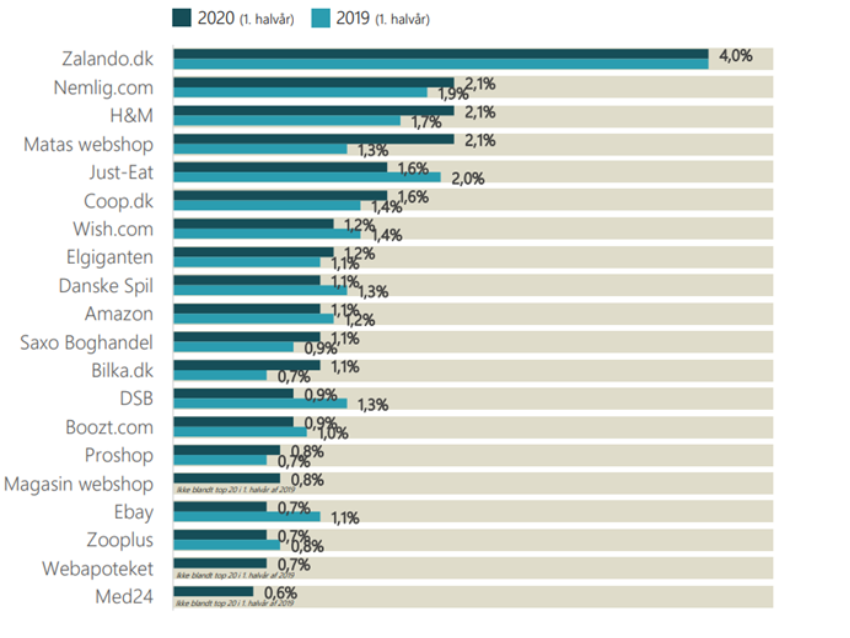 Her er listen over de 20 største netbutikker lige nu