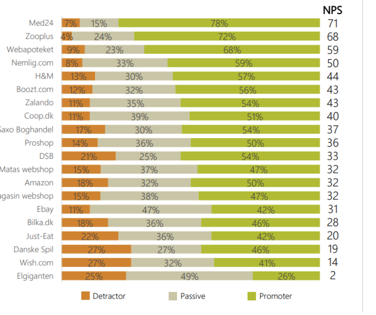 FDIH har således også kigget nærmere på netbutikkernes Net Promter Score (NPS), der er internationale standard, der kan måle på kundernes loyalitet og tilfredshed.