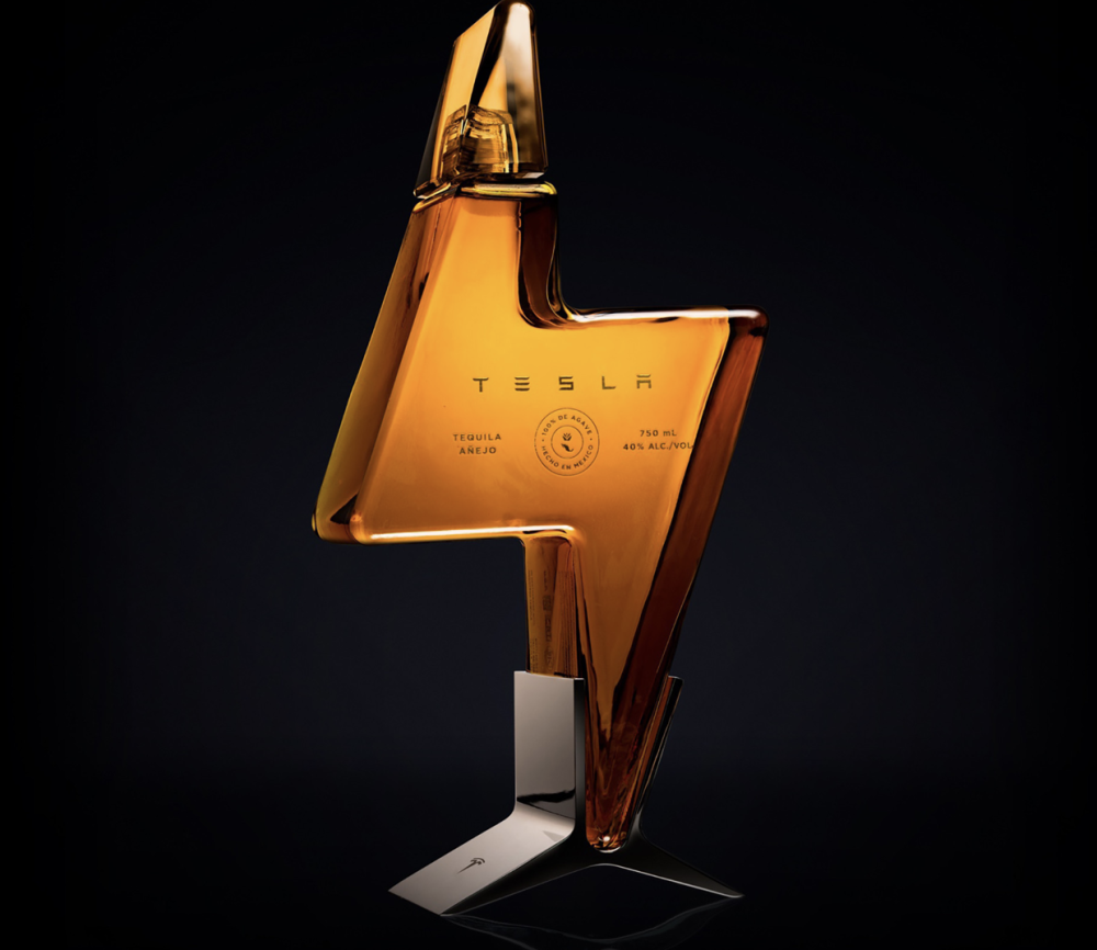 Det nye produkt er angiveligt en reference til en aprilsnar fra Elon Musk. Her skrev han på Twitter 1. april 20108, at Tesla var gået konkurs og at han selv var blevet fungdt sovende oven på Tesla Model 3 omgivet af tomme ”Teslaquila-flasker”. Efterfølgender registrerede Tesla rent faktisk varemærket Teslaquila.