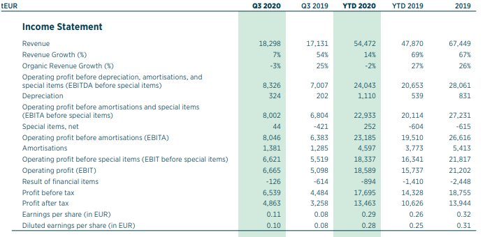Derved er barren hævet markant i forhold til 2019, hvor overskuddet i tredje kvartal lød på 23 millioner kroner.