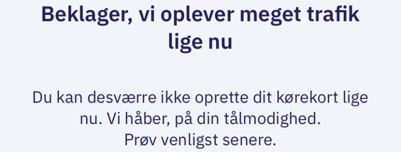 Men tirsdag formiddag er det på grund af heftig trafik for flere ikke muligt at gå i gang med oprettelsen af det digitale kørekort.