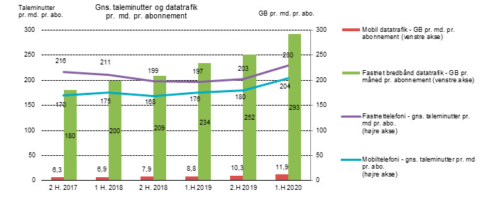 I alt blev der i snit koblet 293 gigabyte per bredbåndsforbindelse op via fastnettet.