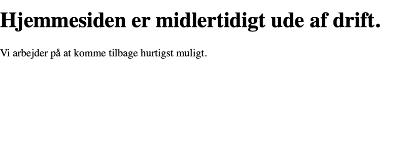 ”Hjemmesiden er midlertidigt ude af drift. Vi arbejder på at komme tilbage hurtigst muligt.”