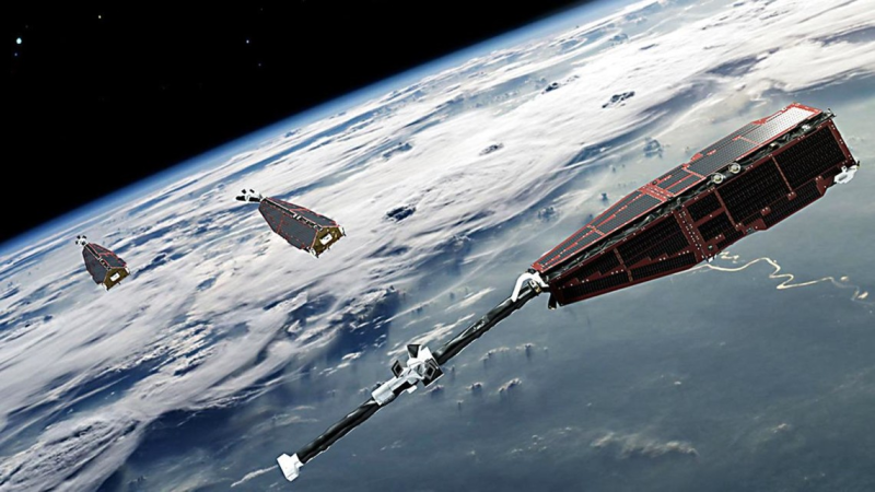 Titel: Rumsnak, tre sæsoner tilgængelig – på billedet ses en gengivelse af de tre Swarm-satellitter, der blev sendt op i 2013, og som DTU Space har en meget stor del af æren for.