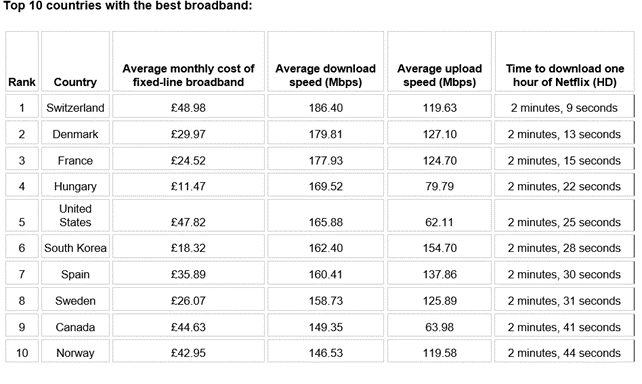 Det viser en undersøgelse fra comparethemarket.com, der har sammenlignet bredbåndsforholdene blandt 35 OECD-lande.