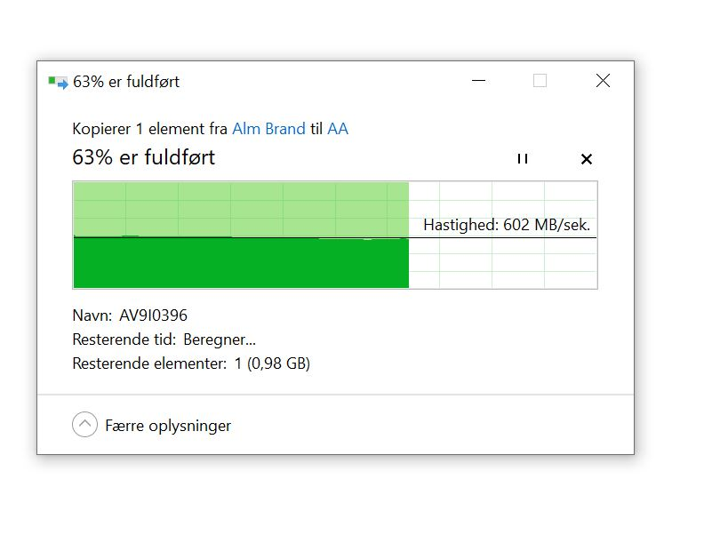 Til sammenligning topper hastigheden ud ved 500 megabyte i sekundet, når de samme filer skal flyttes til og fra en SATA-monteret SSD-disk monteret internt i testmaskinen.