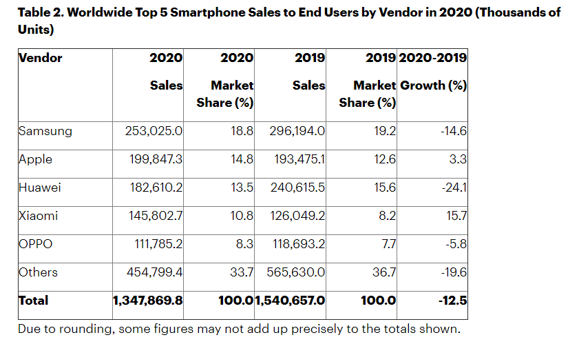 "Salget af 5G-smartphones og billigere mellemklasse-smartphones minimerede markedets fald i fjerde kvartal af 2020," siger Anshul Gupta, forskningsdirektør hos Gartner, i analysen.