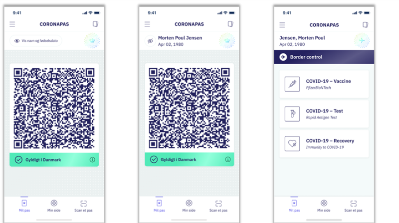 Når du åbner den nye app, bliver du mødt af en QR-kode, som kan blive skannet ved indgangen til restauranter, koncerter og andre steder, hvor der kræves coronapas.