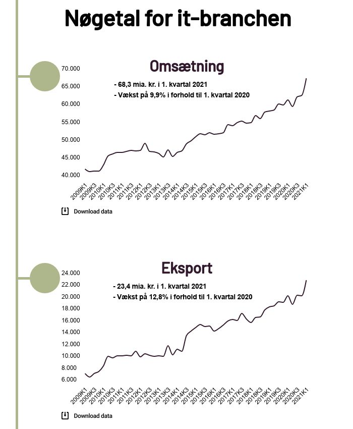 Og med en samlet vækst på knap 10 procent i it-sektoren står det godt til sammenlignet med resten af erhvervslivet, der i samme periode formåede en vækst på 5,5 procent og eksportnedgang på 0,6 procent.