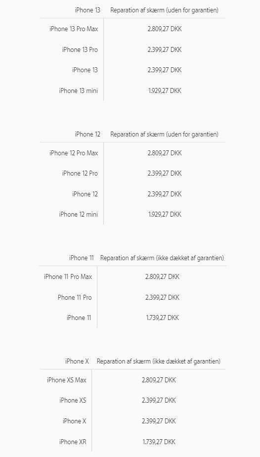 Apple tager nemlig også op til 2.800 kroner for at skifte en ødelagt skærm på de tre tidligere iPhone-modeller, iPhone X, iPhone 11, og iPhone 12.