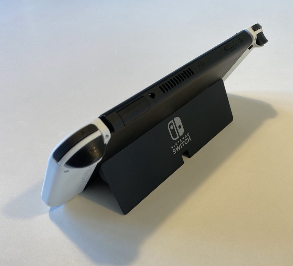 Den udskældte fod fra den første Switch-model, som skulle tages i brug hvis konsollen skulle bruges i stående stand, har modtaget en markant forbedring med en støtte der nu følger stort set hele konsollens længde. Det betyder langt mere stabilitet og mindre risiko for et knæk i plastikken.