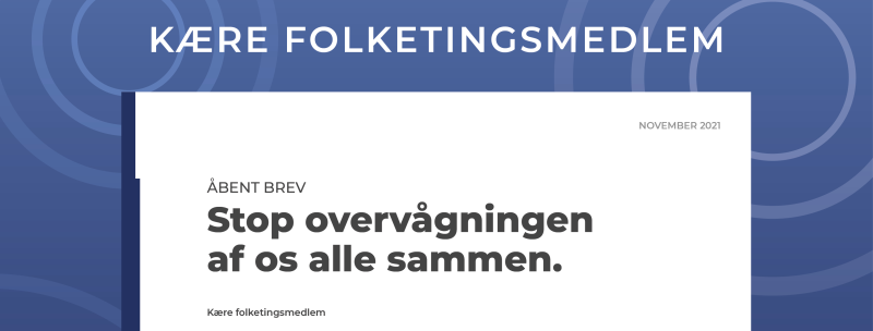Brevet har fået overskriften "Stop overvågning af os alle sammen," og her slås det fast, at det er "uacceptabelt, at vi alle skal mistænkeliggøres og overvåges."