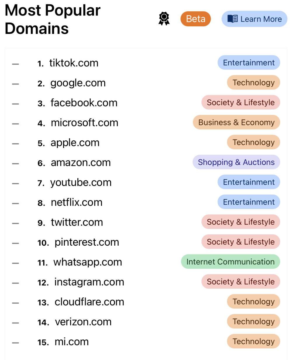 Foruden Google og TikTok er Facebook, Amazon.com og Microsoft.com også på top 10 over verdens mest besøgte hjemmesider.