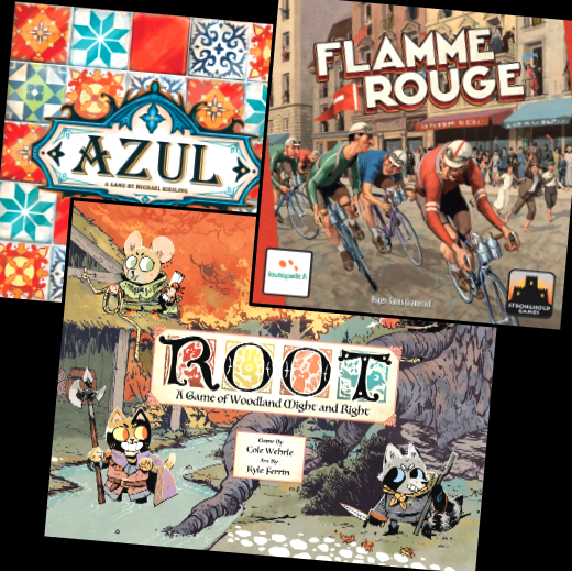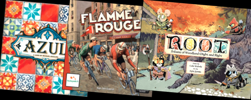 Endelig skal nævnes Root, der er et af de senere års mest originale og roste spil. Det er lidt mere komplekst at lære end Azul og Flamme Rouge, men absolut tilgængeligt og dertil virkelig sjovt (men desværre uden danske regler).