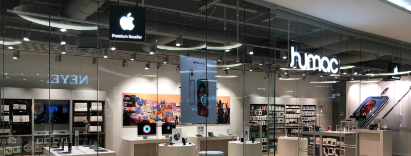 Humac har 23 fysiske butikker og 250 ansatte rundt omkring i Danmark, og kæden blev i 2009 opkøbt af den russiske kæde.