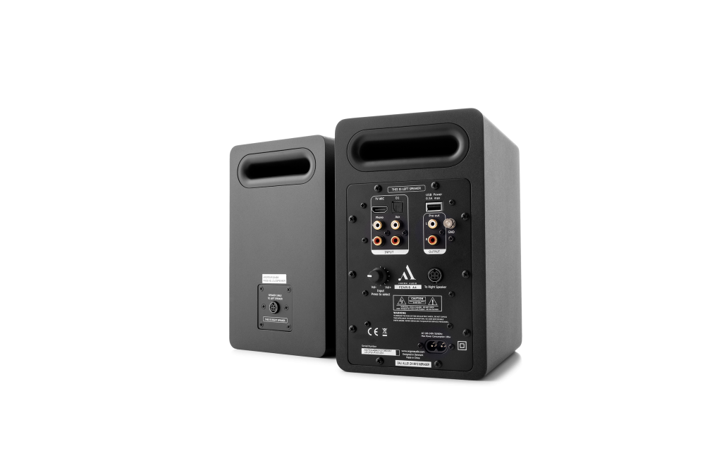 Den venstre højttaler huser al elektronik - også forstærkeren.