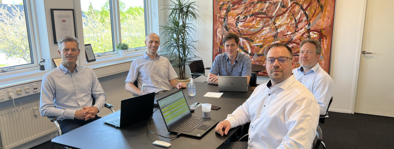 Ledelsen i Microdata og 1stLevel: Fra venstre, rundt om bordet: André Dommer, CEO i Microdata, Stig Helm, CPO i Microdata, Allan Ellegaard, partner i 1stLevel, Brian Møller, partner i 1stLevel, Daniel Christiansen, CTO i Microdata