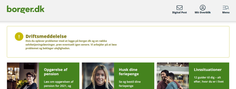Borger.dk og Digital Post er i øjeblikket nede.