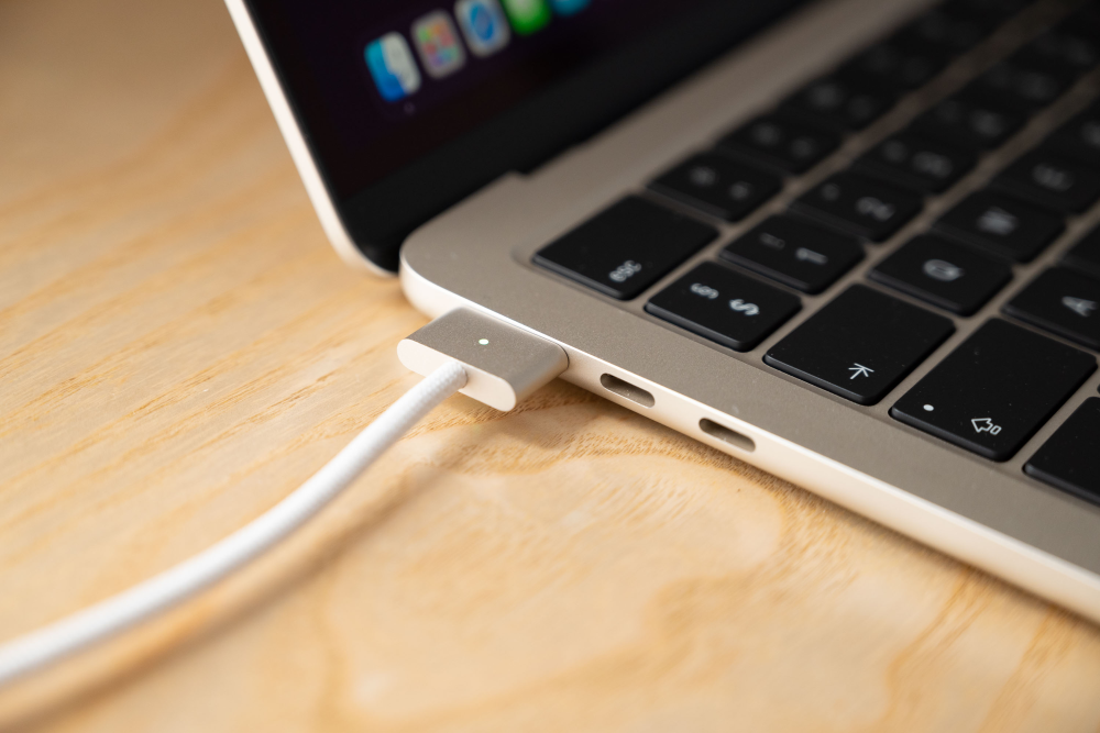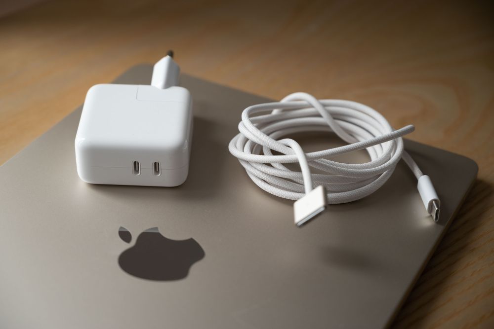Med til opladeren følger samtidig et sleevet strømkabel, som munder ud i Apples praktisk magsafe-stik, som på sikker vis sikrer, at stikket ryger ud af sig selv, hvis nogle skulle komme til at hive i ledningen.
