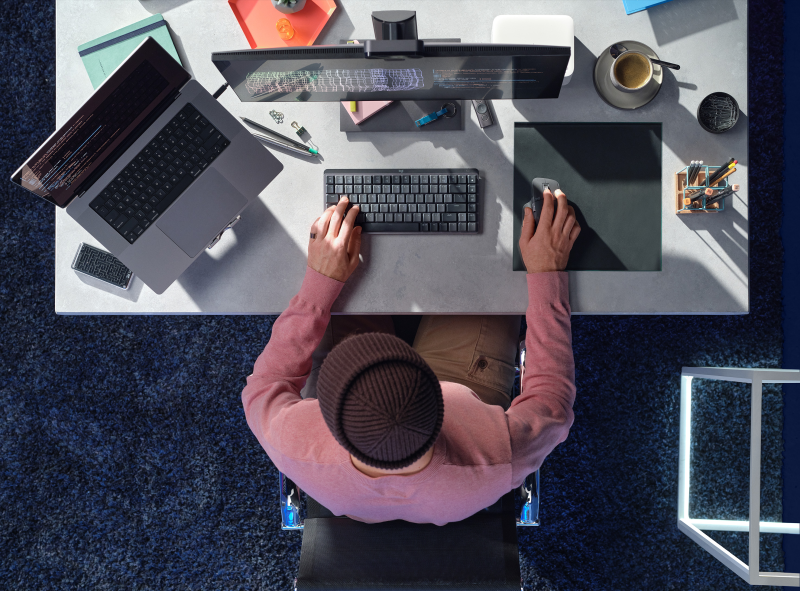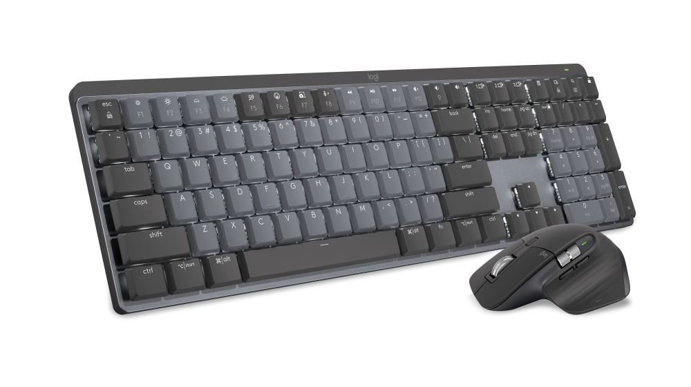 Logitechs MX er ret nedtonet og har en kombination af lyse- og mørke grå taster. Helt underspillet – dog er der lys, så du kan se tasterne i mørke omgivelser.