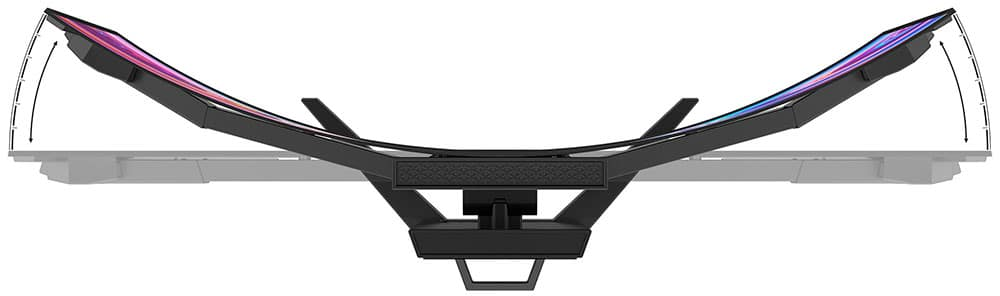 Det er en fuldvoksen sag der strækker sig over 45 tommer ved 21:9 format og hvor rammen huser nogle motorer, der gør at sider kan bøjes ind mod brugeren.
