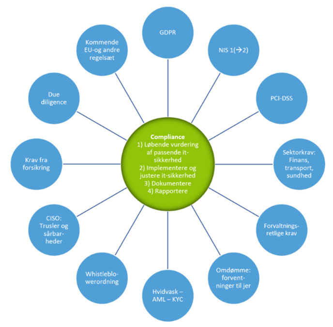 2) Og vi skal efterleve alle de gamle og nye lov-, direktiv- og forordningskrav til netop vores branche og konkrete it-aktiviteter.