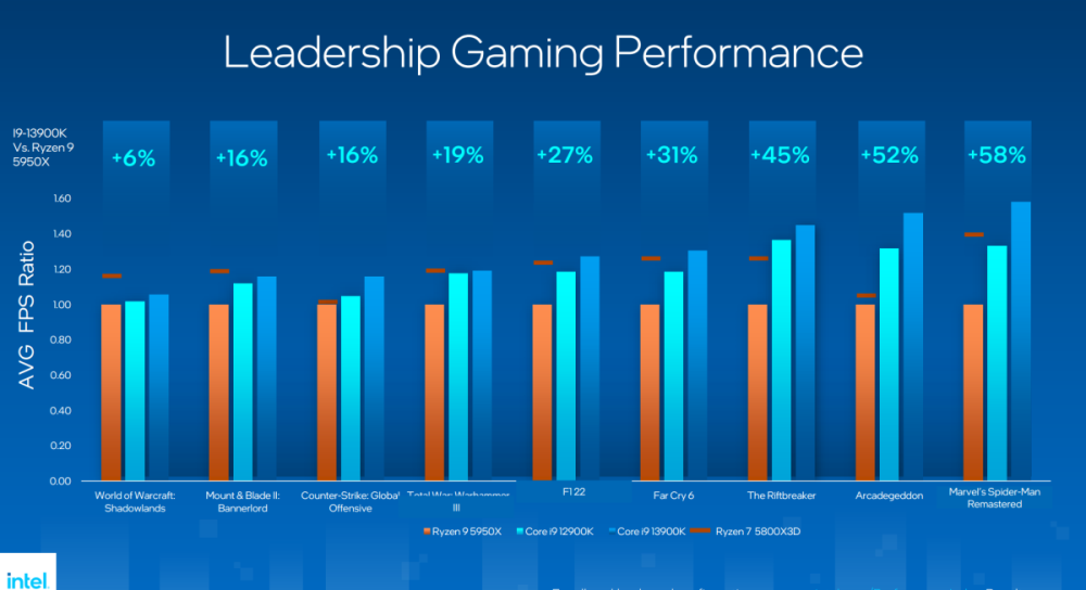 Til gengæld leverer Intels nye top-CPU 15 procent højere ydelse, når det gælder enkeltkernede opgaver, mens der kan leveres over 40 procent højere ydelse, når alle kerner arbejder samtidig.