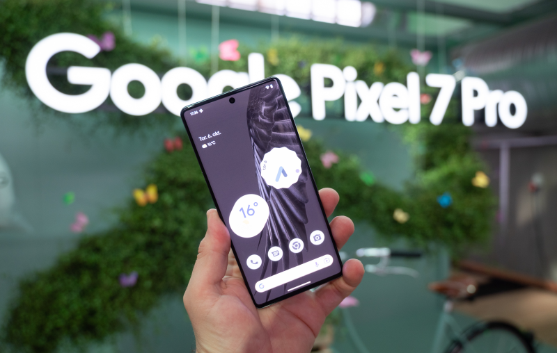 Pixel 7-Pro kan erhverves fra 6.999 kroner med 128 gigabyte lager og 7.799 kroner for topmodellen med 256 gigabyte lager.
