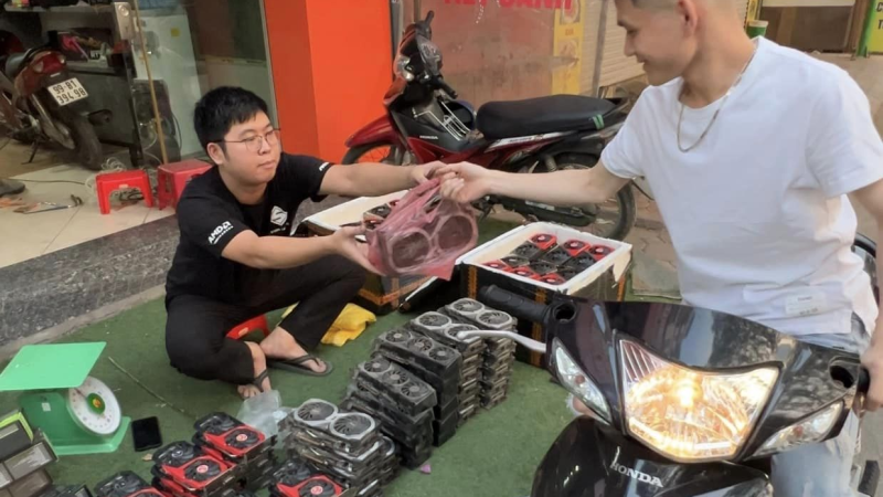 Situationen gør den vietnamesiske influencer Lê Thành sjov med, på hans sociale medie-sider, hvor han har slået en intermistisk gadebutik op, hvor bunkevis af grafikkort sælges i løs vægt.
