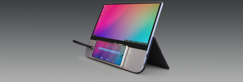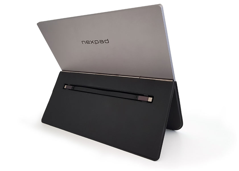 Et medfølgende folde-cover kan også sikre, at skærmen kan stå for sig selv, eksempelvis i samspil med en smartphone med USB-C udgang.