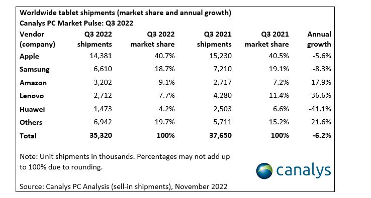 Ifølge Canalys har Amazon haft fremgang på grund af brandudsalg af selskabets Fire-tablet-computere.