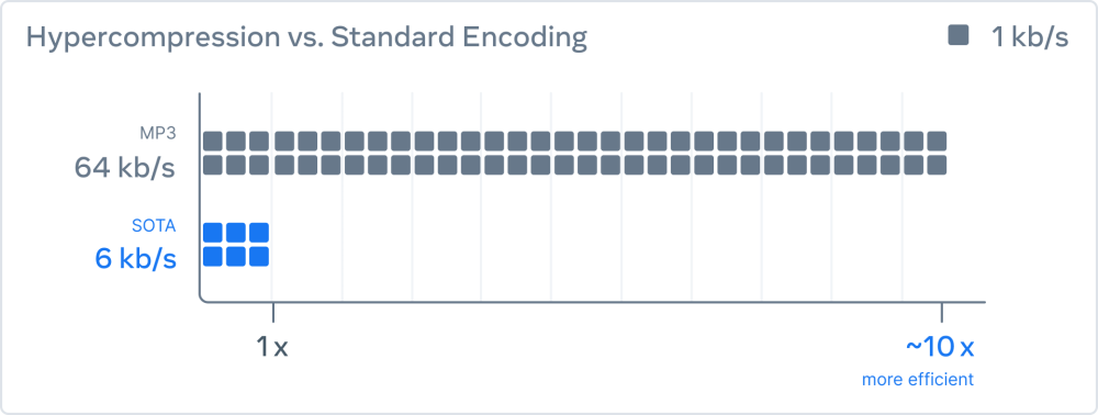 Facebooks moderselskab Meta er klar meden ny audio-komprimeringsmetode, der kan komprimere lyd, så det fylder 10 gange mindre end en MP3-fil i 64 kbps uden tab af lydkvalitet.