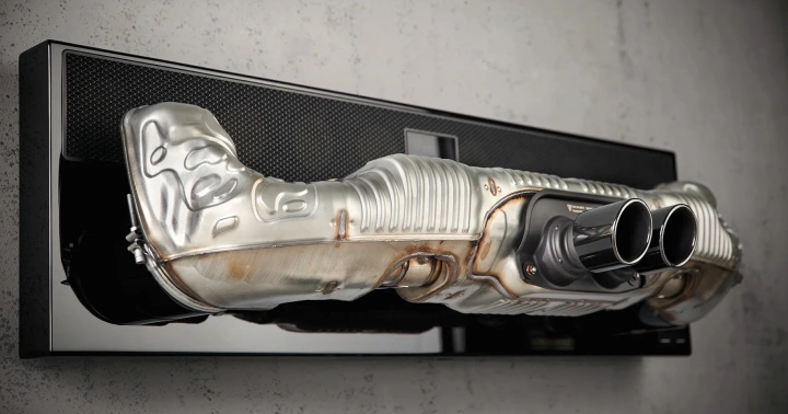 Her er tilløbsstykket ikke så meget materialerne eller teknikbladet men i stedet, at lyden skubbes igennem udstødningssystemet fra en ægte Porsche 992 GT3 sportsvogn.
