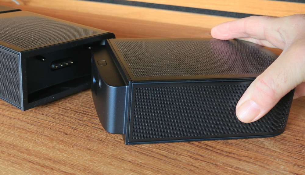Men det er netop den gode bas, der løfter resten op. For selve lydbaren og de aftagelige højttalere er ret små. Der er små højttalere men ved høje lydtryk bliver de alt andet lige presset, og er med til at gøre lyden lidt hård og kantet.