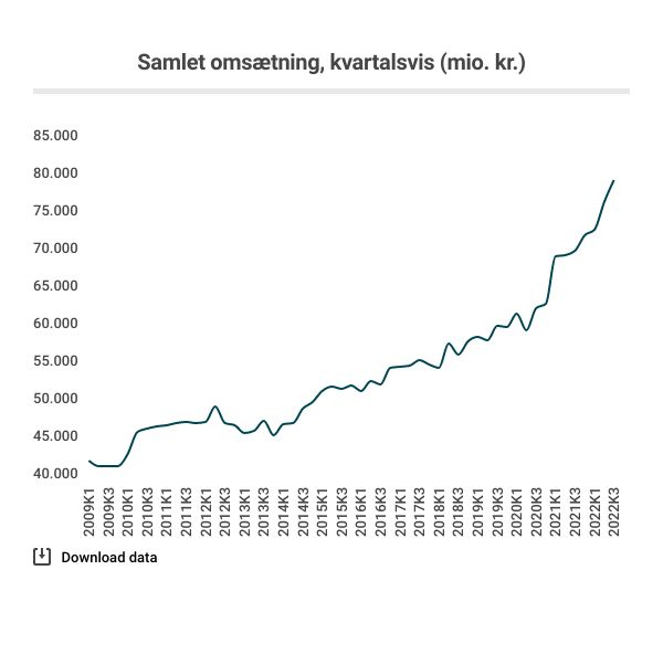 Samtidig udgør det en fremgang på 13,4 procent i forhold til samme kvartal i 2021, hvor omsætningen lød på 70,7 milliarder.