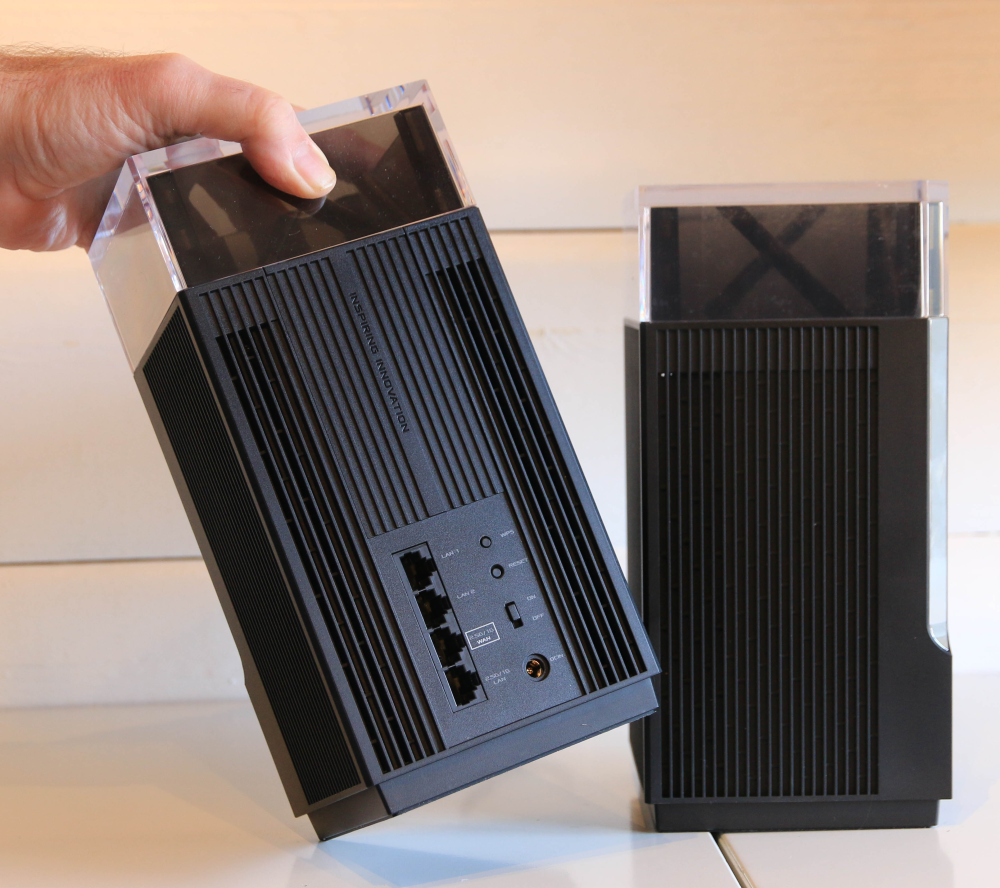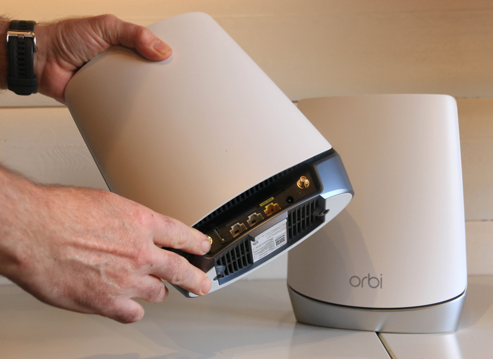Derfor er Orbi bestående af to enheder: Hovedenheden, der også er et modem, hvor du kan tilslutte både kabel og et 5G SIM-kort. Samt en ekstra lidt mindre enhed, der fungerer som en mesh. Og disse kan så udbygges efter behov med flere mesh-enheder.