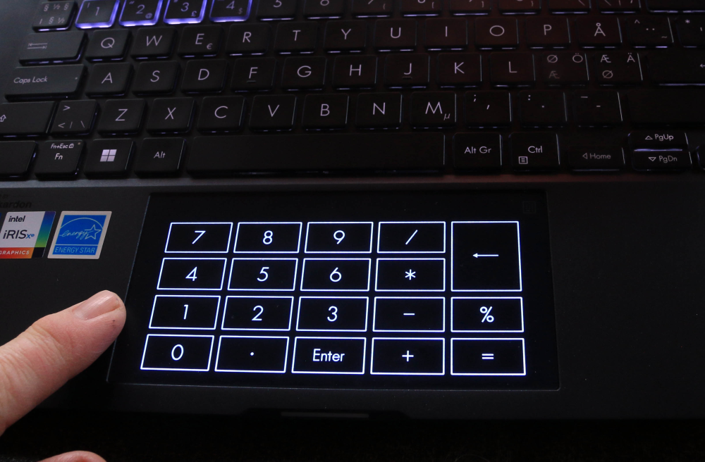 Dertil er touchpad genial, da du med tryk på en knap kan frembringe numerisk tastatur på hele touchpaden. Og denne fungerer samtidig som almindeligt pegefelt.