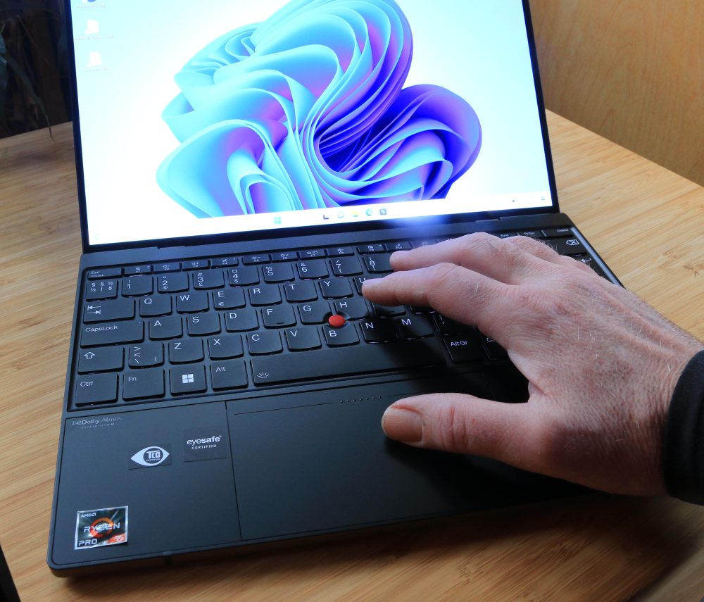 Lenovos valg af AMD er godt. Dels er processoren kendt for et lavt batteriforbrug, hvilket kan bekræftes.